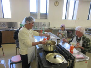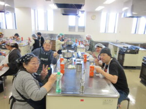 日本語教室の生徒さんたち7名が、霞城セントラル4階ヘルシークッキングルームにて、料理にかかわる言葉など日本語について指導を受けつつ、芋煮の作り方を学びました。地産地消の芋や肉で作った山形の郷土の味を、生徒さんたちは楽しみました!芋煮のつゆで作ったカレーうどんも、皆さんに好評でした。
